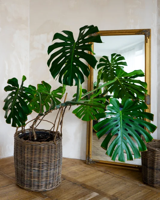 - Плетёные кашпо (рафия, ротанг, бамбук) с влагозащитным вкладышем
